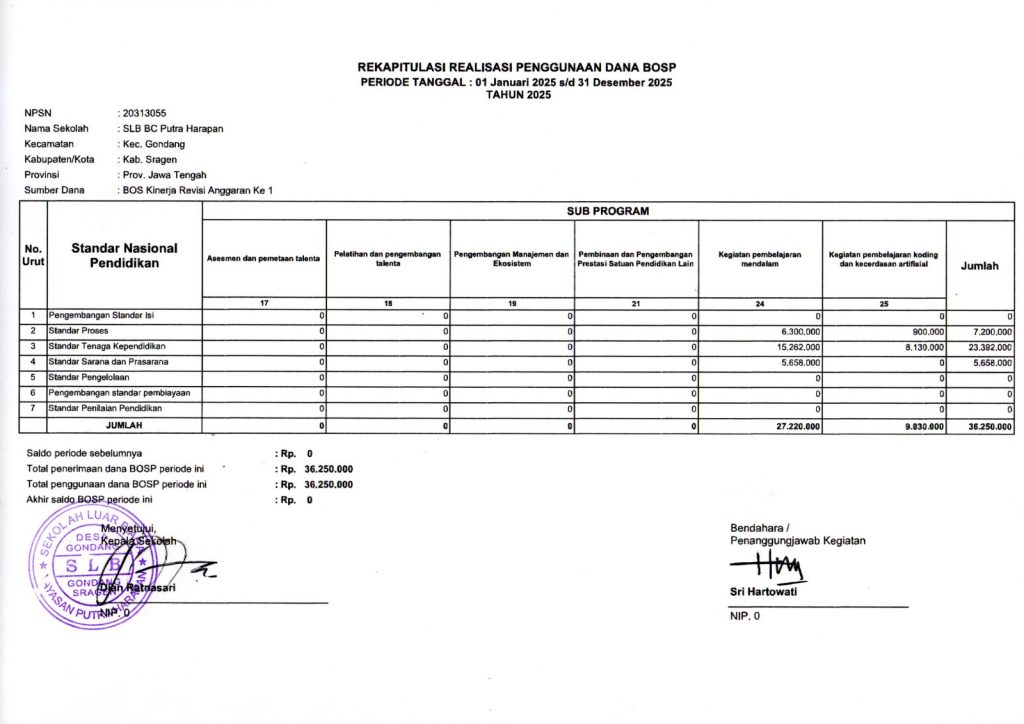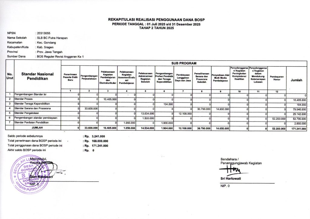 REKAPITULASI REALISASI PENGGUNANAN DANA BOSP